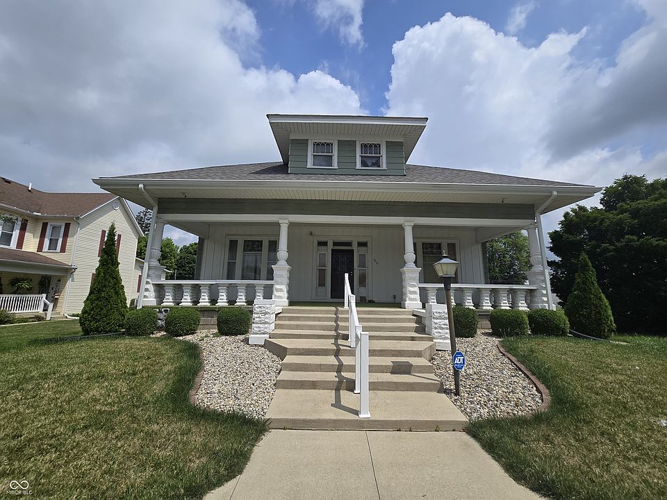 Welcome to this charming three-bedroom, one-and-a-half-bathroom home that's bursting with character! As you step inside, you'll be greeted by stunning hardwood floors and exquisite built-ins throughout. The property boasts beautiful lead and stained-glass windows, adding a touch of timeless elegance. Situated on a large double lot, this home offers ample outdoor space, including a huge front porch perfect for relaxing evenings. A unique feature is the guest suite or potential income-producing efficiency apartment located out back. Modern conveniences include an R.O. drinking system and new gutters with gutter guards. Additionally, a walk-in attic provides substantial storage and workspace. Priced at just $142,500, this unique gem is an incredible bargain. Don't miss your chance to own a home with such distinctive character and charm!