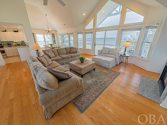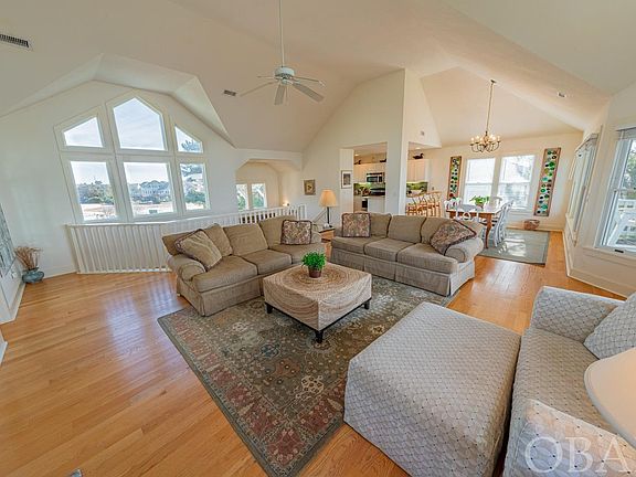 Welcome to 'Links End,' a stunning 5-bedroom, 4.5-bathroom home located in the sought-after Village of Nags Head. With its prime location, this soundfront gem offers breathtaking views of both the sunset and the beautifully manicured 9th and 18th greens. The design and layout of this home perfectly capture the essence of coastal living and luxurious comfort. Starting on the first floor, you'll find a king ensuite and a queen ensuite, providing spacious and private retreats. Two more bedrooms share a convenient hallway bath, making this home ideal for hosting family and friends. There's also a cozy den, perfect for relaxing, and every room benefits from stunning water views. The large covered deck is the perfect spot for enjoying the serene surroundings. The heart of the home is on the top floor, where an open floor concept meets cathedral ceilings, creating an airy and welcoming space. The kitchen is a chef's dream, with granite countertops and stainless steel appliances. Another king ensuite on this floor offers privacy and luxury. The outdoor living space is expanded with both covered and sun decks, offering amazing views and making it a great place for gatherings or quiet moments. On the ground level, there's a large deck, carport, outdoor shower, and plenty of storage for beach gear and golf clubs, adding convenience to your beach days and golf outings. Living in 'Links End' means having exclusive access to the Village at Nags Head's incredible amenities, including sound and ocean access, parks, and more. Residents and guests can enjoy two sound side piers with parks, kayak storage, and an oceanfront park with a bath house and private parking. The Nags Head Golf Links provides a stunning 18-hole championship course, while the Village Beach and Tennis Club offers a large pool, restaurant, lounge, and tennis courts (membership optional) 'Links End' isn't just a beautiful home; it's also a smart investment. With over $63,000 in rental income in 2023 and a projected $75,000 for 2024, it presents a fantastic opportunity. This home offers the perfect blend of luxury, leisure, and potential income, making it an ideal choice for anyone looking to invest in a sound-to-ocean community that's as beautiful as it is exclusive.