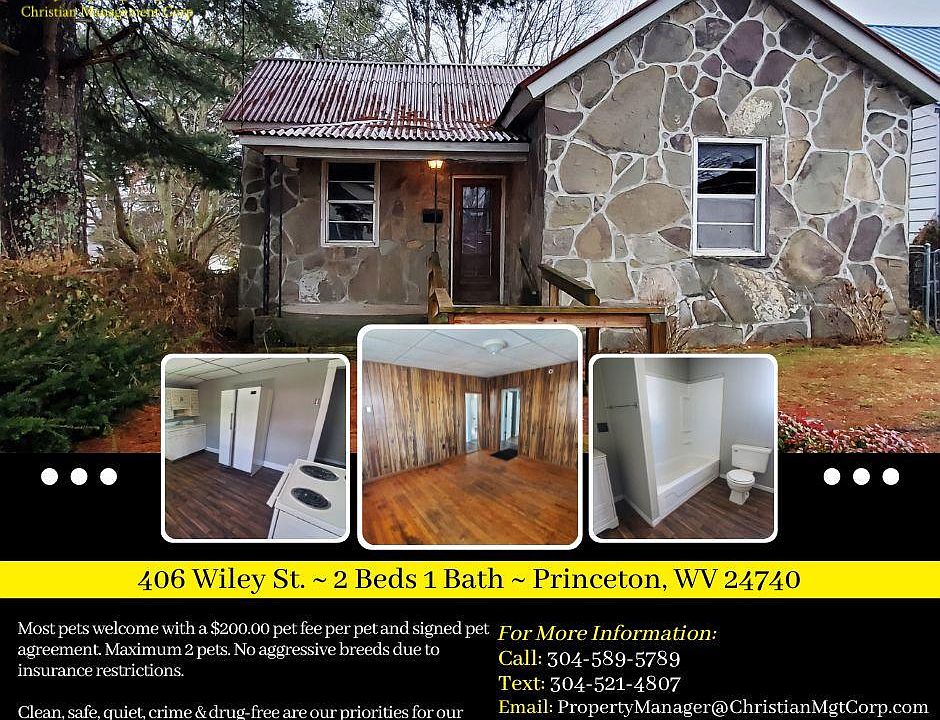 This 1000 square foot single family home has 2 bedrooms and 1.0 bathrooms. This home is located at 406 Wiley St, Princeton, WV 24740.