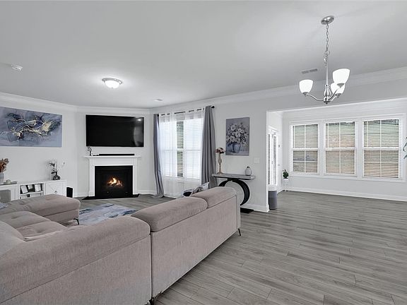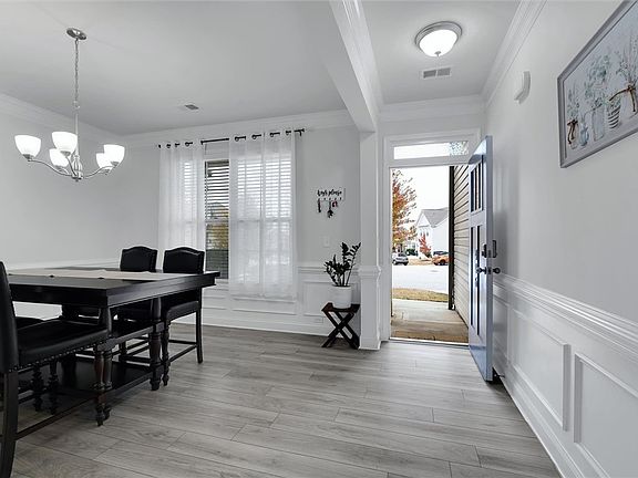 Step inside to an inviting foyer accented with elegant picture molding and crown molding throughout the main level, setting the tone for the home’s attention to detail. The formal dining room provides a perfect setting for gatherings, while the open-concept kitchen impresses with a large island, granite countertops, subway tile backsplash, stainless steel appliances, gas range, and a walk-in pantry with built-in shelving. A sunroom just off the kitchen fills the space with natural light and offers a peaceful place to relax.
