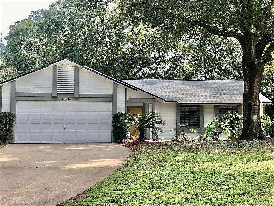 Beautiful 3/2 home on cul de sac street with no HOA. NEW ROOF and NEW A/C - both energy efficient. NEW granite and quartz countertops, NEW sleek gray tile in wet areas, NEW paint inside and out - on all ceilings, walls, doors & trim, as well as exterior cement areas. Impressive modern bright fireplace and wood mantle draws your eye to the open plan living room and attached dining area with warm laminate flooring. Large kitchen includes eat-in space, pantry, built-in microwave, solid wood cabinets and pass-thru bar to dining area. NEW carpet in 2nd and 3rd bedrooms. 2nd bedroom has 3 closets - perfect for an office. Laminate floor extends to the Master bedroom, which features a walk-in closet and en-suite bathroom. Enjoy the screened-in covered patio off the living room and the tropical feel of the backyard. Backyard opens to a huge expanse of extra space on the pie-shaped lot with 2 fruit trees...extend the fence for private vehicle storage, and work & play area, so many possibilities. Spacious 2-car Garage with opener has pull-down ladder to attic for storage, long work cabinet with peg-board wall, clean open space for washer/dryer, and extra long driveway. Cul de sac street is at the back of the neighborhood and close to lake, park and playground. Forest Oaks continues to be a favorite Ocoee neighborhood, convenient to major roads, shopping, dining and entertainment venues.