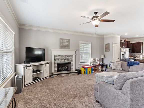 Rocking Chair Wrap Around front porch with True 4 Bedroom with additional Office/Library on Main level. Family Room is open to Kitchen which Features Stained Cabinets, Granite Countertops, Pantry & Island. Master Bedroom has Trey Ceiling with Two Walk-in Closets. Large Master Bath has Double Vanity with Stained Cabinets & Granite Countertops and Separate Tub & Shower. Large Secondary Bedrooms Full Basement. 2 Car Attached Garage with main level entry. . Private Back Yard. Cul de sac lot. Highly Desired Schools!!