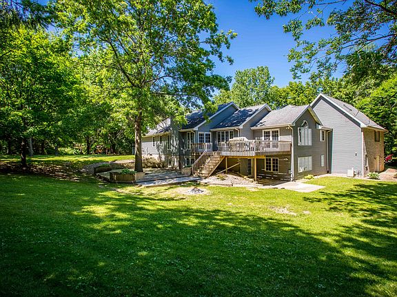 Gorgeous wooded setting for this brick custom built home right in the middle of town with 1.5 acres.Plenty of privacy and seclusion with this 5 bedroom, 5 bath home with 5,000 sq. ft. of living space. Beautiful windows and views from every room. Large formal living room with fireplace and formal dining area plus upgraded kitchen opening into huge keeping room leading to a multi-level deck in the wooded back yard. There are 2 bedroom suites on the main floor plus a bonus bedroom suite above the garage which would make a great at- home office, and 2 more bedrooms in the finished walk-out lower-level. Nice extra den/study room also on the main floor and a huge lower level family/game room. This floor plan has endless possibilities and is vacant & move-in ready.