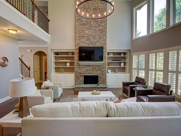 Welcome to this beautifully designed home offering space, style, and convenience in one of the area’s most desirable swim/tennis neighborhoods. Step into the main level, where a private office sits to the left and a formal dining room to the right, creating the perfect blend of function and elegance. The heart of the home is the open-concept living area, featuring a dramatic two-story wall of windows, a stunning stone fireplace with built-in surround, and seamless flow into the spacious kitchen and breakfast room. The kitchen is as practical as it is inviting, with plentiful cabinetry, a pantry, bar seating at the island, and easy access to the garage. Step out from the breakfast area onto the deck, offering both covered and uncovered spaces ideal for year-round outdoor entertaining. A main-level bedroom with a full bath makes a perfect guest suite or multigenerational option. Upstairs, retreat to the luxurious primary suite with vaulted ceilings, an attached sitting room, and a spa-like bath boasting a huge shower, separate soaking tub, and dual vanities. Three additional bedrooms upstairs include one with its own private bath and two connected by a jack-and-jill. The unfinished terrace level, already stubbed for a bath, is ready for your personal touch, whether you envision a media room, home gym, or additional living space. Outside, the beautifully landscaped yard enhances the home’s curb appeal and provides a peaceful backdrop. All of this is located just minutes from Avalon, Downtown Alpharetta, and Milton’s charming shops and dining, with easy access to top-rated schools and community amenities.