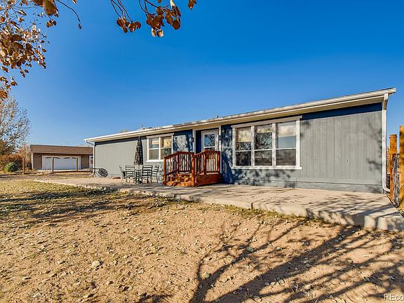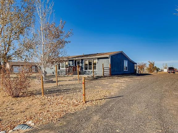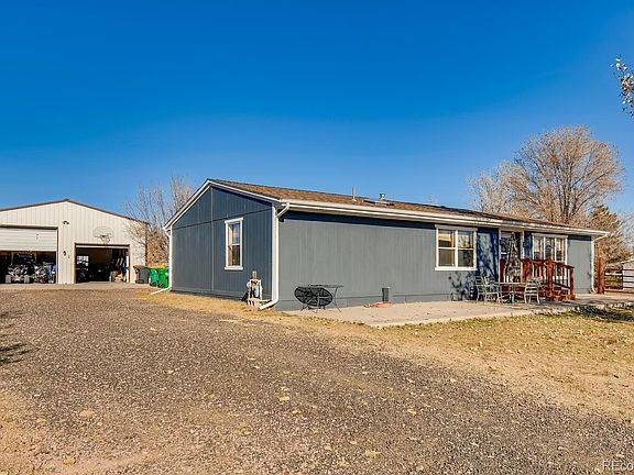 COUNTRY HOME on a full acre, 2 LARGE GATES AND COMPLETELY FENCED TOO. HUGE 30X44 outbuilding with 8' and 11' DOORS AND EXTERIOR ACCESS DOOR. Crushed asphalt help keeps the dust down. INTERIOR AND EXTERIOR totally REPAINTED. NEWER FURNACE AND A/C, ROOF and appliances are newer too. COVERED PATIO IN THE BACK AND a great fenced dog run. A shipping container 40x10x10 provides lots of additional secure storage. EASY ACCESS OFF I-76