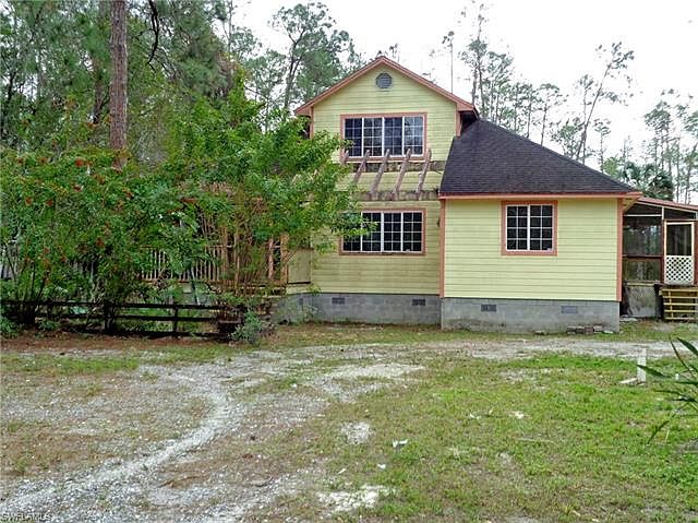 Handyman Special 3BR/2BA home nestled on a 1.5 acre lot of beautifully wooded land in the peaceful Golden Gate Estates. This 1,886 sq. ft. fixer upper features a split bedroom floor plan with a large living area, an open, eat-in kitchen with ample cabinetry, a spacious loft, and a large master bedroom with attached bath that offers a combo tub & shower. Relax or entertain comfortably on the screened in wrap around porch providing plenty of outdoor seating space and beautiful views of the naturally landscaped yard. All Information recorded in the MLS is intended to be accurate but cannot be guaranteed, buyer advised to verify. Sold As-Is. Only cash/renovation loan offers with 0 day inspection period will be considered. Buyer should perform their due diligence/necessary inspections before submitting an offer. To help visualize this home's floor plan and to highlight its potential, virtual furnishings may have been added to photos found in this listing.