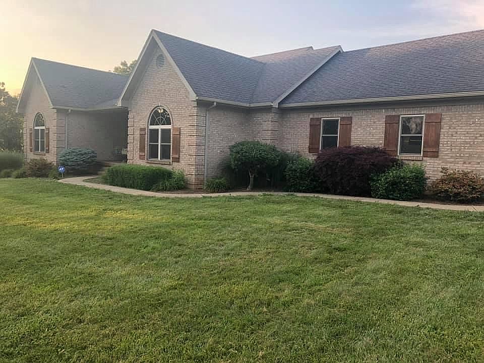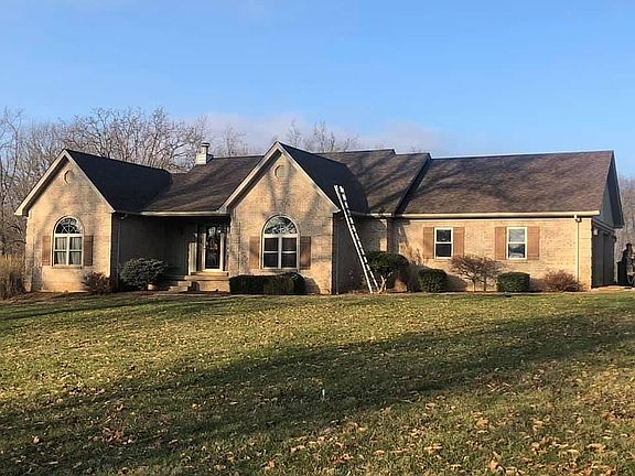 - Hard to find Custom built Brick ranch Home located on 5 acres. 3 bdr, 2.5 ba with attached 2 car garage. 40x36 shop with electric, water, heat, & concrete floor. Shop has commercial grade garage doors & floor was sealed with epoxy sealer. Well maintained home features a living room with vaulted ceiling & gas fireplace. Family room & half bath in basement with bar. Roof replaced 2020, main level remodeled 2021, deck and pool, Brandenburg school district, two miles from the Brandenburg bypass. Beautiful views. 1 car garage access in the basement.