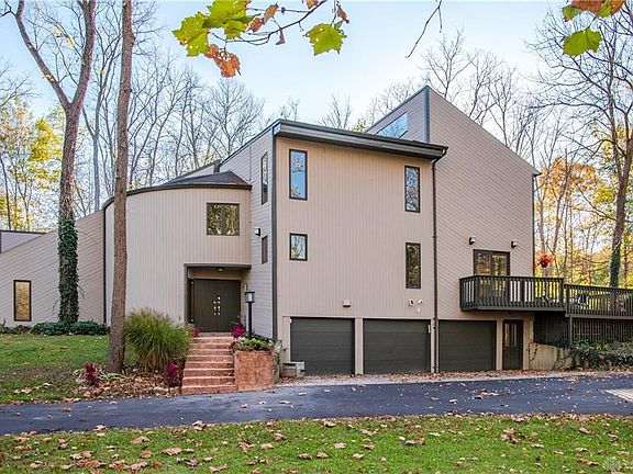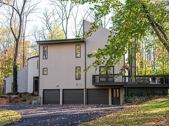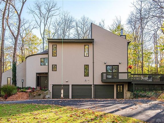 Gorgeous contemporary home on private 3.3 acre wooden lot in Bellbrook school district. Dramatic entryway w/double staircase leading to great room w/vaulted ceiling, slate flooring, gas FP, wet bar w/seating & French doors leading to outdoor patio. Bedroom & full bath on 1st level. Formal living & dining rooms offer beautiful nature views & stunning marble gas FP. Spacious newly remodeled eat-in kitchen features custom cherry cabinets, granite counters, double oven/cooktop, large pantry, wide plank oak floors & door to large deck overlooking the yard. 2nd level owner suite features WBFP & walk-in closet. Fabulous master bath offers a walk-in shower, double vanities, stand alone tub & private balcony. 2 additional bedrooms & study plus laundry room on this level. See attachments for full improvements list. Three car attached garage & storage shed. Minutes to restaurants/675. This impressive home has so much to offer-schedule a showing soon to see for yourself! FP/chimney not warranted.