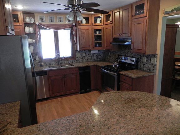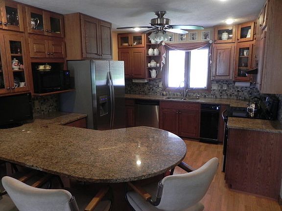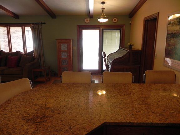 Beautiful all brick ranch has all SS appliances, granite counters & walk-in pantry, laminate wood flooring, casual dining & huge formal dining rm, pellet fp in living rm, main fl has 3 bedrms, 3 baths (master-jet tub). Main fl laundry, bsmt has large bath with sauna, 2 huge conforming bedrms, theatre room and with bsmt has 4200 sq ft of living area. 2496 sq feet of outbuildings that can hold an RV
