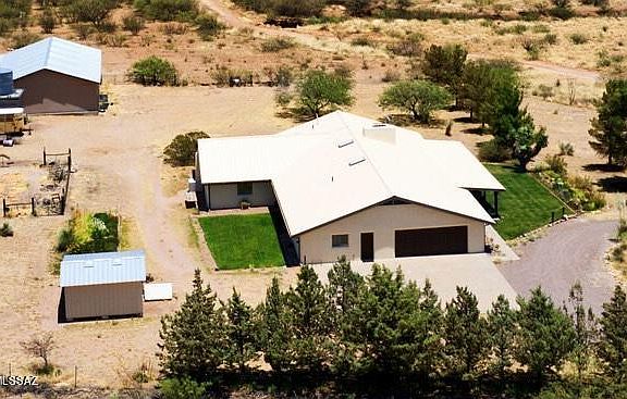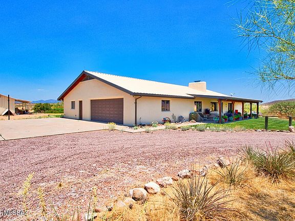 Equestrian & independent life with no HOA limitations! Solar rammed-earth, custom home AND barn/shop on 60-acres. Move-in ready. Owned-solar system/backup generator, excellent well. Private, off-grid. Easy 11 miles to historic Tombstone AZ. HOUSE: 2,680SF rammed-earth 2-ft deep, insulated walls comprise main living area 4-BR, 2-1/2BA, laundry, dining, kitchen w/ Wolf range-oven, living room, w/stone fireplace. Actually 4,400SF under-steel-roof spans attached 2-car garage, storage, 2 porches and office/5th BR. Saltillo floors, solid white-oak cabinetry. AND milled timber & steel 2,880SF BARN SHOP 3 horse stalls, saddling/hay storage, tack room, workshop, oversized doors. RV space. Gardens, lawns, mature trees, more! Ride-out from property. Fenced & cross-fenced 60-ACRES--CAN BE SPLIT/BUILD!