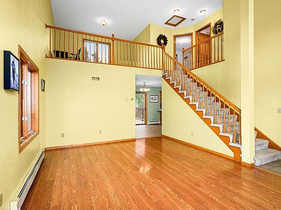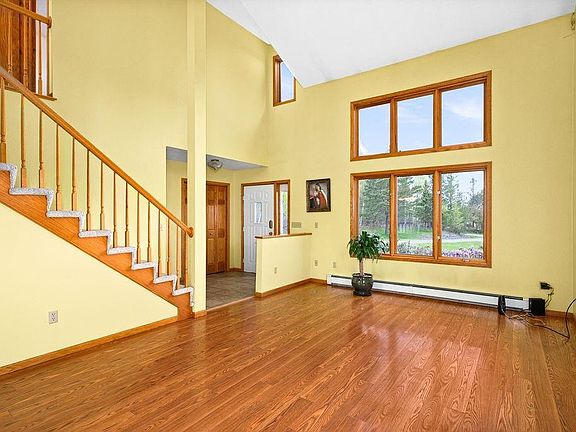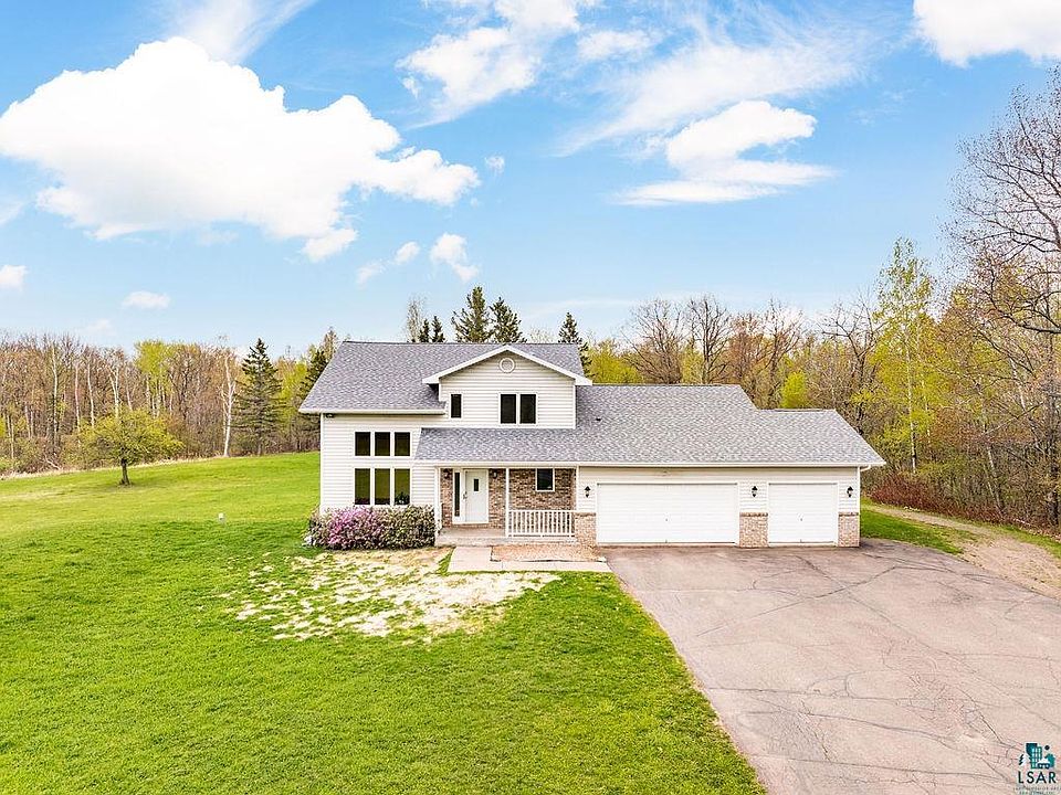 Country living just a couple minutes outside of the Woodland neighborhood in Duluth. This 4 bedroom, 4 bath home is on 5 acres with a 32 ft x 48 ft pole building. From the foyer you're drawn into the light-filled living room with its wall of windows and vaulted ceiling. Continue on into the large kitchen and dining room area with a gas fireplace and sliding glass doors out to the large 14 ft x 18 ft deck. You'll love the stainless steel appliances, double-oven, quartz countertops, and tiled backsplash. The primary bedroom, located on the main floor, includes a walk-in closet and a newly remodeled primary 3/4 bathroom with walk-in shower and double sinks. The laundry room, 1/2 bath, and access to the 3 car garage is also on the main floor. Upstairs is the office overlooking the living room, 2 additional bedrooms, and a full bathroom. Lots of additional living space can be found in the lower level with a massive family room with gas fireplace and bar area, a very large 4th bedroom, and another full bathroom. Schedule a showing today and come take a look at this beautiful property, close to town and only about 1/4 mile to a snowmobile trail that connects to the State Trail.
