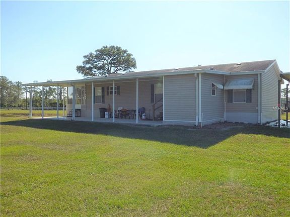 This super clean 3 BR 2 BA home offers 1,288 SF of living area and is situated on 2.4 acres of beautiful property. Fresh interior paint and laminate floors throughout make this home move-in ready. Bright cheerful kitchen features pantry and an eat-in breakfast area with access to the screened patio for enjoying morning coffee with a view of the spacious front yard. Nice large master bedroom and bath with double sink vanity, tiled shower and large linen space. Additional bedrooms offer nice large closets and hall bath has also been upgraded with tiled tub/shower. Large carport for keeping your vehicle out of the Florida sun. Outside storage area with workbench and new water treatment system. Room to own that horse you have always wanted. Don''t delay...see it today! Contiguous 2.4 acres lot available also...please see MLS# S4840166.