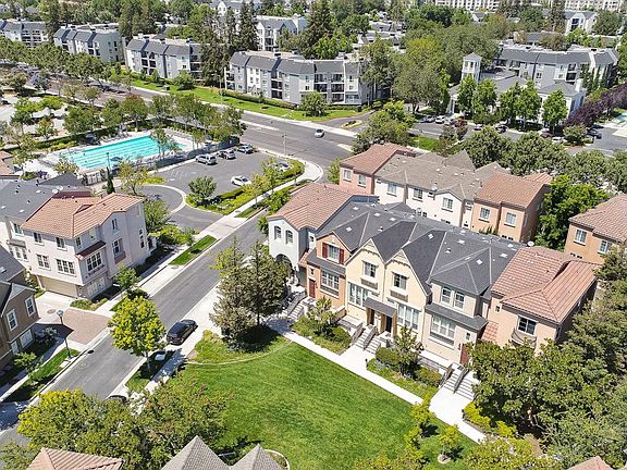 This spacious and bright townhome sits in the most sought-after location in Rivermark. This end unit overlooks a park-like greenbelt and is sheltered by mature trees. The HOA pool is a block away, while Live Oak Park, highly rated Don Callejon School (K-8), Northside Branch Library and the diverse restaurants and shops of Rivermark Plaza are all close by. The living room has soaring ceilings, hardwood floors, a gas fireplace and a sliding door that leads to the patio. The open concept second level has high ceilings, hardwood floors, large windows and includes a dining room, family room, kitchen and powder room. The kitchen features Corian counter tops, gas cooktop, stainless steel appliances and an abundance of cabinetry. The top floor has 3 bedrooms, 2 bathrooms and an interior laundry room. The master suite has a dual sink vanity, soaking tub, separate shower and walk-in closet. This townhome is complete with a 2-car garage, extra storage, air conditioning and dual pane windows.