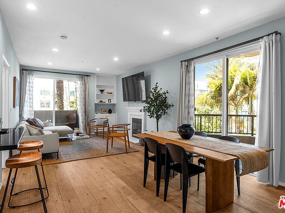 Live a resort lifestyle at this sun-drenched condo in Del Rey Terrace, offering plentiful amenities with low HOA dues - heated pool and spa, fitness center, clubhouse, media room, package lockers, gated parking and code-secured bike storage room. With a prime location in the Marina Arts District and unique position in a private wing of the building, this rare 3-bedroom, 3-bath condo offers the premium combination of exclusivity and accessibility. Enjoy the feeling of safety perched high above the street in a secure building, while experiencing the true home feeling of no shared side walls, windows and light on all four sides of the condo, and private outdoor spaces with pool, front-facing and city views. //From your private entry walkway, step inside and find a home that feels truly special, where thoughtful upgrades and comfort go hand in hand. The kitchen offers upgraded black quartz countertops, under-cabinet and drawer lighting, a breakfast bar, and stainless steel appliances that invite culinary creativity. The open-concept living area welcomes you with the warmth of a fireplace, framed by views of mature green palms and purple jacarandas through expansive sliding glass doors. It's a space equally suited to entertaining or relaxing, with recessed lighting throughout and a 77" OLED TV on a wall-mounted pull-down swivel arm - yours to keep. //The primary suite offers a quiet sanctuary, complete with a walk-in closet and ensuite bath, while the secondary bedroom is just as inviting - boasting its own ensuite, private balcony, and serene pool view. A third bedroom provides the flexibility to serve as a home office or ample space for more family or guests. //The benefits of a 2000s build include effective dual-pane windows and sliding doors, so you can enjoy the breathing room, light and views that a front-facing unit offers, yet also retain the peaceful quiet inside from the bustling activity below. Additional comforts include central AC and heating, in-unit laundry, and plenty of storage throughout. Smart-home touches elevate the everyday: smart light switches, Nest thermostat, a Ring alarm system on every window and door, and an HOA-approved Lockly smart lock with fingerprint access, giving your home an effortless feel of extra comfort, security and protection. //Whatever mode of transportation you prefer, you can be nearly anywhere in minutes - ride the bike path to the beach, hop on a boat to the other side of the marina, or walk to the dine-in movie theater or one of the many bars and restaurants in the immediate neighborhood. There is quick access to the 90 fwy for venturing further, and your two side-by-side parking spots in the gated garage include a dedicated 9KW EV charger. This condo offers a comfortable, happy home with all the tools for an active lifestyle right at your front door.