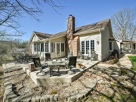 If You Have Been Waiting for a Peaceful & Serene Setting on 3+ Acres of Gorgeous Grounds You Have Found Your Dream Home! Located Less Than 15 Minutes from Clarkson & Manchester on a Private Lane. Welcome to this Custom Built Great Room Ranch Home. Drive up & Notice the Perfect Private Setting. Go Around Back & Discover Secluded Wooded Grounds & the Back Property Line is on the St. Louis County Border. Enter & Find This Home Beams w/ Pride of Ownership Starting w/ Flooring in Entry, Gorgeous Wood Floors, Vaulted Ceilings, Woodburning Stove, Open Staircase, Granite Counters & Stainless Steel Appliances, Main Floor Laundry, Primary Suite w/ Vaulted Ceiling & Luxury Bath. The Sunroom Addition will Definitely be one of your Favorite Rooms! Downstairs you will Locate the Second Family Room, 4th Bedroom, 3rd Bath & Recreation Room w/ Built-in Bookcases, 2nd Fireplace, Custom Stone Wall & Fish Tank & Large Bar w/ Cabinets & Dishwasher. This Home is Fantastic for Entertaining! Additional Rooms: Sun Room