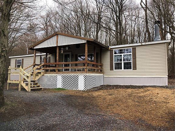 Here it is! Lovely 3 bedroom 2 bath country Home nestled in on a beautiful 2 acre wooded lot! Walk up onto the welcoming front porch and into the spacious open concept 2 level living room with wood burning fireplace. Looking straight ahead from the front door you see the dining room with sliders to the huge deck off the back! Perfect for quiet nights & outside dining! Big Beautiful sunken kitchen with huge center island! Tons of storage! Almost brand new appliances! Down the hall you’ll find the main bathroom & 3 spacious bedrooms including a Master suite with walk-in closet plus a bright beautiful private bathroom with soaking tub & separate shower!Recent upgrades include brand new 100 foot well, 200amp electrical service, skirting , concrete , new floors including beautiful tile in both bathrooms, kitchen , fresh paint throughout & so much more! Gorgeous walking trail through the woods goes over a small stream into your own private paradise! Great spot in the woods to put a camper or tiny house! ***Taxes and assessment are not updated as Doublewide was moved onto the property in the fall while owner’s house was being built ***