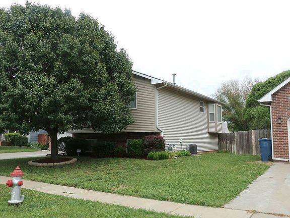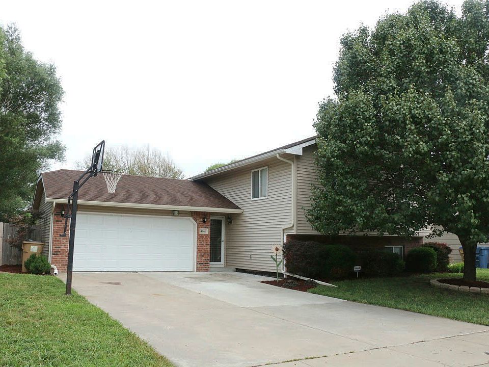 Fabulous 3-Bedroom, 2-Bath bi-level home with a 2-car attached garage in Quail Ridge Addition. Enjoy the easy access to K-96 highway, shopping, the YMCA, and much more! This home features many updates including a newer roof replaced in late 2013, sink and disposal in 2014, refrigerator in 2012, and newer heating and air in 2010. This home is move-in-ready and shows a pride of ownership. The front of the home features newer siding replaced in 2014, nice landscaping, and a built-in basketball goal. The large back yard is fully fenced and has a two-tier deck, just perfect for family gatherings. Inside, the upper level has a spacious living room with a vaulted ceiling, built-in decor shelf and wood flooring. The living room is open to the dining space and kitchen for convenience. The dining space has bay windows and a walk-out to the upper deck, allowing for plenty of natural light. The kitchen has all appliances, including refrigerator, oven, microwave, and dishwasher. The master bedroom suite has double closets and a built-in vanity/desk. The upper level also features an additional bedroom and full bathroom. The lower level offers additional entertaining space with the large view-out family room. This home is wired for surround sound and the TV in the lower level stays! Enjoy the split bedroom plan with the lower level bedroom and full bath. No specials!