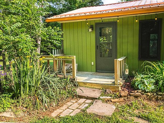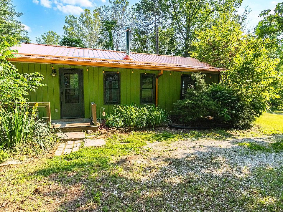 Rare opportunity! Sweet and special 2.3 acre parcel on desirable Hinkle Rd, just north of the Lake Griffy Preserve. So much potential with two small houses, open ground, a storage building with a slab floor and more. Main residence is a cute and efficient 1 bedroom, 1 bath ranch over Michigan basement. Galley kitchen features custom wood shelving, tile countertops, and looks over the back of the lot. The large living room features a wood stove with new flue, and walks out to a patio area primed for a new deck, home addition, or entertainment space. The large bedroom offers a walk-in closet and abundant natural light. There is also a separate tiny house/studio with 1 bathroom and kitchenette that could be guest space, art space, storage, auxiliary living or office space just a short commute across the yard. New copper metal roof and six inch gutters, freshly installed HVAC, fresh exterior paint, new water heater in the studio. Property sold in as-is condition. Please note: square footage listed is for main house only.