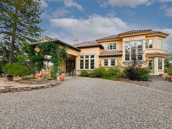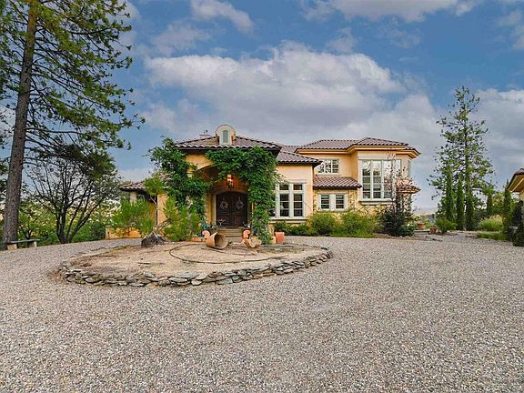 For the discriminating buyer, yearning for their own private luxury estate minutes from the charming town of Murphys Ca in the Sierra Foothills, this beautifully appointed European Chateau on 17 acres is truly an oasis and sanctuary for the soul. Everything in this home is refined and elegant yet warm and rustic and completely perfect for taking in the breathtaking views of California's Gold Country and the Stanislaus National Forest. Just a 10 minute drive from the town of Murphys, named one of Forbes' 15 Best U.S. Destinations for 2021, sits this magical private estate. As you approach the manor you will be greeted by an elegant iron hand forged gate that will lead you past the 1400 square foot, 2 bedroom, 2 bath guest cottage and a circular drive to the main home. With 4,384 square feet of living space, the main home was built for entertaining with a gourmet kitchen, luxury appliances, polished limestone counters and french doors leading to expansive outdoor patio areas with panoramic views off every room. The main home includes an en-suite on the main level and a master suite upstairs along with an additional bedroom for a total of 3 bedrooms and 3.5 baths. The architectural details of this home are stunning and the home Includes an office downstairs and a loft area upstairs for additional bonus use as a study, library or nursery. Just a 2 hour drive from Downtown Sacramento, 2.5 hours from San Jose, 2.5 hours from Oakland, you can be enjoying your peaceful surroundings or visiting the charming Gold Rush towns. Within a 30 minute drive you can be hiking in Big Trees National Forest, boating on New Melones Lake, kayaking or fishing on Lake Alpine, skiing in Bear Valley, golfing at Copper Valley Golf Resort, exploring the Angels Camp Museum or wine tasting in Murphys. This beautiful part of the Sierra Foothills offers something for everyone and any interest and now you can have your own private professionally decorated estate to call your own. The guest house includes two en suites, a large family room for gathering and a covered outdoor patio with fireplace. The architectural details of this home are stunning. Complete list of features available upon request including a helicopter pad! Total square footage and details are totals of both home and guest house.