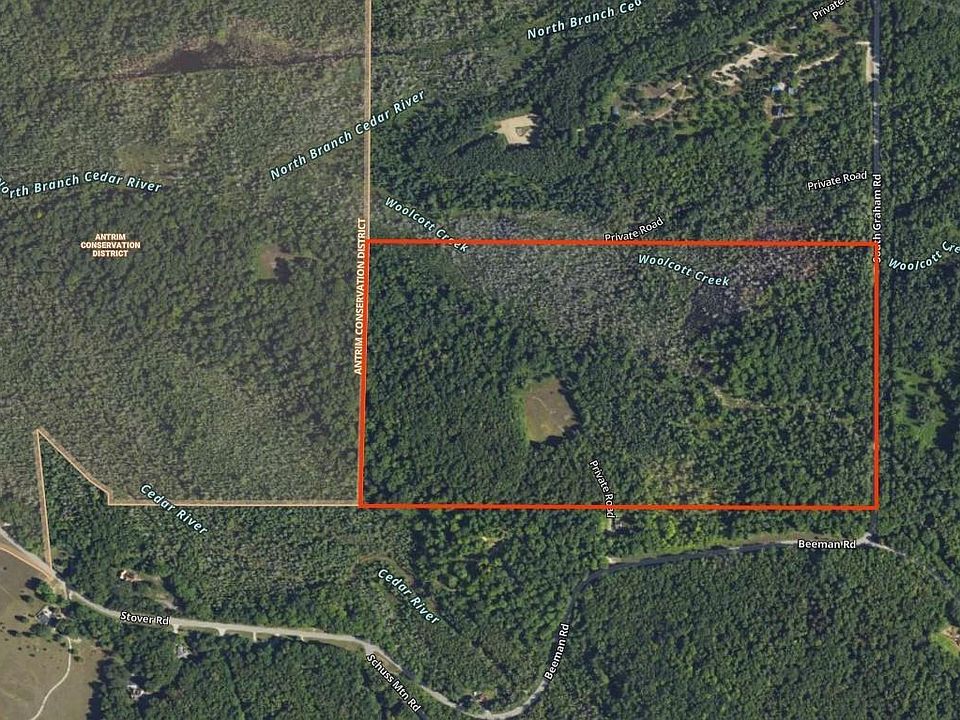80 wooded acres located east of Bellaire on S. Graham Rd. Meandering stream flows through property. Producing gas well on property. Seller owns 50% of the mineral rights and royalties, which are included in the sale. Old mobile home on the property has no value.