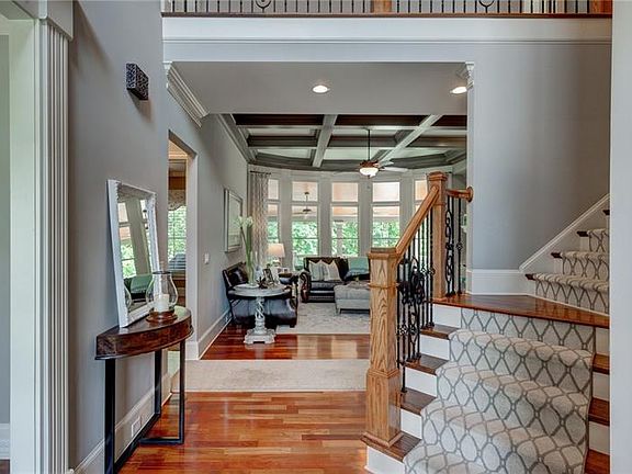 Remarkable custom-built home in award winning East Cobb school district. Step into a 2-story entry foyer with great room that has coffered ceilings, fireplace, plus wall of windows from floor to ceiling. Gourmet kitchen overlooks keeping room with fireplace. Entertain for hours with a covered porch off keeping room overlooking natural backyard. Brazilian cherry hardwoods on main and upper floors. Plantation shutters throughout entire home. Over-sized Master Suite with fire side sitting area, massive walk-in closet and spa bath. Office on main. Basement level includes waterproof hardwoods throughout, game/rec room, wet bar, guest bedroom, full bath and a workshop. All secondary bedrooms have private full bathrooms. Night Vision exterior lighting in front and back. Private lot which backs up to a creek. Pool & tennis community and walking distance to Mabry Park and Garrison Mill Elementary!