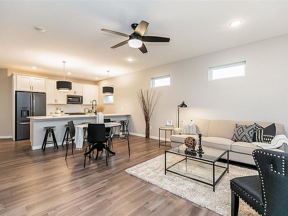 Every component of a luxury custom home added to one-of-a-kind "simple living" floor plan including a finished lower level family room. Equity potential opportunity in premier east side development. Zero stairs from garage to home. All upgraded materials from construction material to appliances. Oversized heated garage w/ storage cove and finished walls. Hard surface flooring throughout. Tile shower and floors. Designer lighting. Primary bedroom separated from two bedrooms. Opportunity for 5 bedrooms.