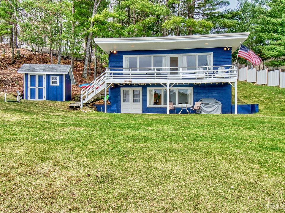 Are you ready for summer? This awesome cottage on Lake Ellwood could be just the thing you need! Imagine relaxing on the deck, fishing from the boat dock, or just entertaining friends and family around the fire pit during those magical summer evenings. Situated on a wooded one-acre lot with 100 ft of sandy lake frontage, this cute and cozy getaway features 2 bedrooms and 2 full baths, family room with wood stove, plus a storage shed. Now is the time to start making memories to last a lifetime!