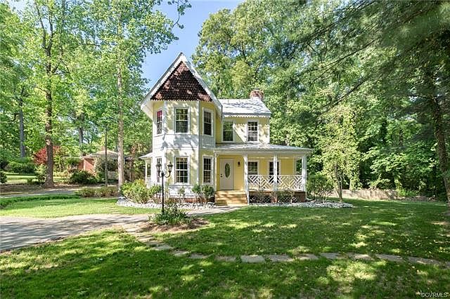 Welcome to "Storybook" @ Wakefield, where Victorian and Tudor elements meet to form an almost whimsical atmosphere in a cute as a button, renovated cottage along the heart of the Cherokee Road corridor, a short stroll to THE river. The Storybook style was popularized in England and the US in the 1920's, and represents homes that are as much about a feeling you get as they are about the architecture itself. This particular home features a 2-story layout with 3 full baths! There are three bedrooms upstairs, including a two room suite with a full bath and a "Romeo and Juliet" balcony. There is a fourth bedroom on the first floor with a full guest bath. Lots of great features including beautifully finished pine floors, granite kitchen with new appliances, replacement windows, two porches and great off street parking. The roof was replaced with beautiful grey-blue HD Shingles in 2020 and a new Carrier HVAC system was installed shortly before that. Need more? There is over an acre of land, with a story book stream, a LARGE storage shed for all of your stuff, a new water heater in 2018, new vanities all in a high demand, undervalued location with short drives to Stony Point FP, Carytown and even the shops at Libbie and Grove. A quick close is possible for you to enjoy the Summer of '22 in your storybook home.