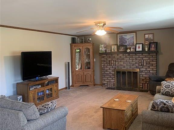 Neighborhood of picturesque homes, This is a beautiful ranch has a brick front with 3 nice size bedrooms and 1.5.baths.Large oak kitchen with tons of cabinets also with island and large eating area. First floor laundry ,Beautiful laminate floors, lovely living room with wood burning fireplace to enjoys the cold winter nights. Enjoy in the back of the house a nice sunroom and off that a large tired deck and a stamped concrete patio with fire pit.2 car attached garage and also a one car garage with enclosed overhang for storage .ALL OF THIS ON 2 PLUS ACRES.