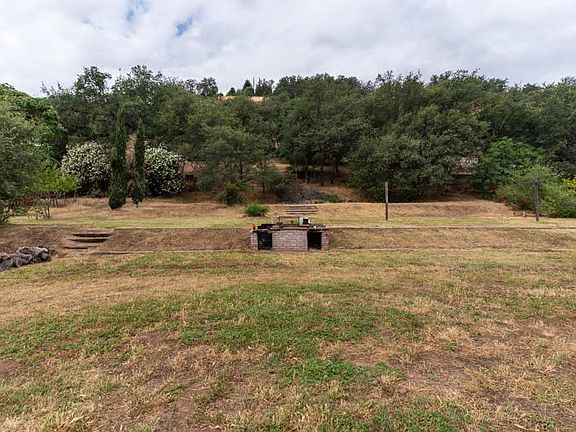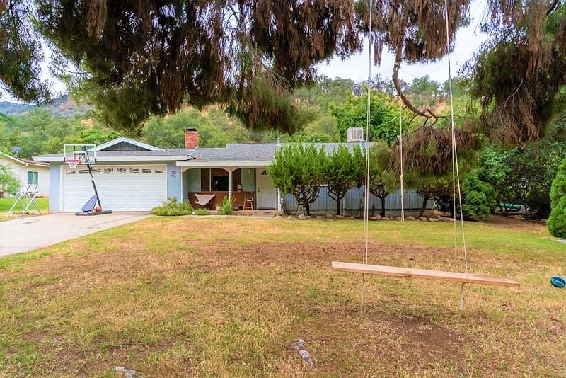 Large wood beams and columns showcase the living room in this mountain home on almost 1/2 acre. An open floor plan is ideal for entertaining and the windows welcome in the natural light. At night one can leave those windows open to hear the soothing sounds of the river across the street and feel the gentle, cool breeze. The home has upgraded multiple mini split ac/heating units and a new roof was installed in 2014. One of the endearing cabin-like features of the home is the original knotty pine siding in bedroom #2. The multi-tiered backyard is fabulous and boasts a vintage built-in BBQ. Don't be surprised to see deer, quail, and turkey traipsing through the yard!