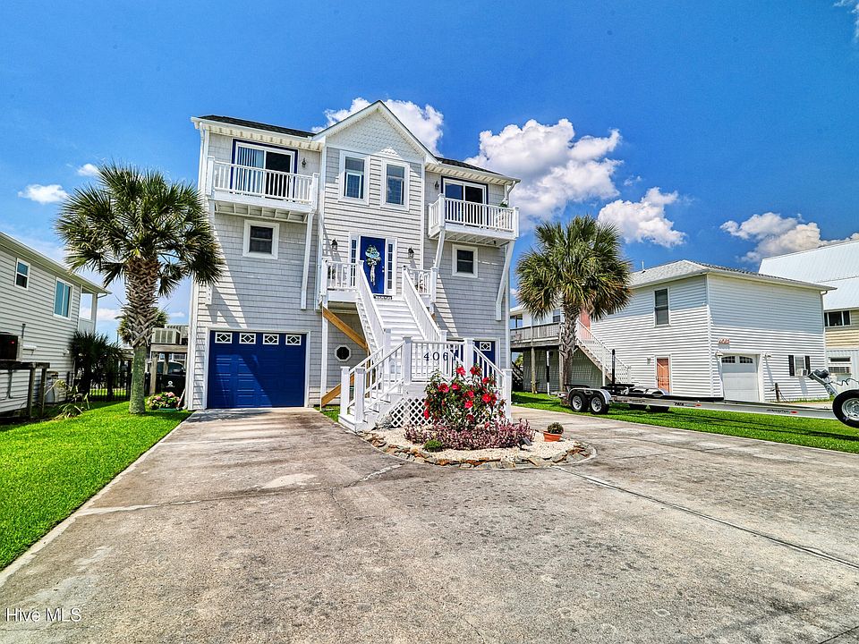 This beach house is situated on a deep water canal in beautiful Surf City! Current owners use the home as a permanent residence but would make for a great vacation rental if you are looking to invest! Boaters will enjoy having a (completely rebuilt) dock with finger pier and a Boatslip featuring a 13,000 LB lift. The seller has made many improvements to the house; added exterior stainless steel cable railings, exterior dumbwaiter, new appliances, 2023 roof, a lovely pergola, LVP flooring, bathroom updates and a storage shed. This home features plenty of storage space, every room has access to a deck and there is a double sided garage. Come enjoy the best of coastal living, boating, fishing, crabbing, walking on the beach and the stunning sunset views!