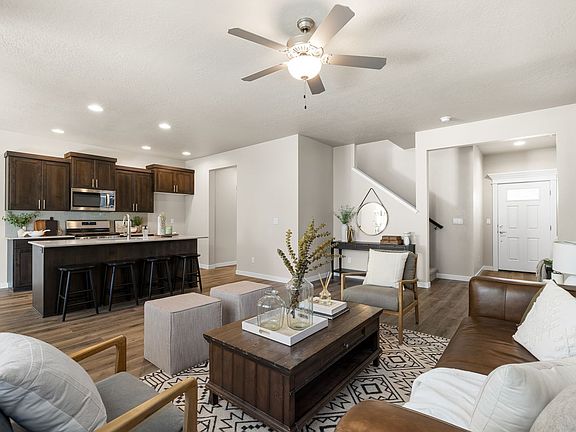 Furnishing Not Included! MOVE IN SPECIAL $1200 OFF OCTOBER! Beautiful updated and move-in ready 4-bed, 2.5-bath home in Movado Greens that offers 1,906 sqft of open-concept living in a prime Meridian location near Eagle Rd and I-84. The main level features new LVP flooring, fresh paint, natural light, and a modern kitchen with quartz countertops, gas stove, stainless appliances, and a spacious pantry. Upstairs you'll find new carpet in all 4 bedrooms. The master includes a primary suite with dual vanities and walk-in closet, plus a convenient laundry room with extra storage. Enjoy a fully fenced yard, covered patio, vinyl fencing and 2-car garage with extended driveway. Located on a quiet street with a full pressurized irrigation sprinkler system, and access to a community pool. Great location near shopping, restaurants and easy access to Meridian and Boise conveniences. The HOA provides front/back lawncare and sprinklers. Small dog negotiable.