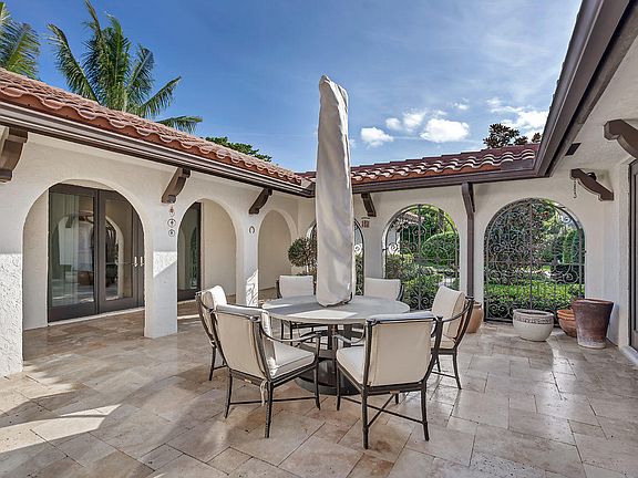 Location!!! Location!!! Spectacular home showcasing quality upgrades and absolute luxury. This California, Santa Barbara-style home is an absolute show-stopper and will delight anyone who craves a life of luxury and leisure. Nestled within the prestigious waterfront gated community of The Sanctuary along a peaceful cul-de-sac street, this luxury home has been beautifully updated and is presented in immaculate condition. An incredible 5,002 total Sqft is on offer which includes four good-size bedrooms and 4.5 bathrooms, an oversized charming courtyard while outside the over 1/3-acre lot boasts picturesque landscaped gardens and stunning outdoor entertaining spaces. The stunning chef kitchen is bursting with must-have features including the Sub-Zero beverage, wine and kitchen refrigerators, the Miele dishwasher, Blanco double sink and the Viking microwave and gas stove. The avid cook will also adore the upgraded cabinetry, Carrara white marble countertops, ivory glass cabinets and the custom ante-room. Walnut wood flooring flows underfoot throughout much of the living space including the dining room, lounge and the expansive great room with a striking chandelier, Barbara Tattersfield fireplace and dual French doors which open to the central courtyard. Soaring ceilings, gorgeous arched windows, plantation shutters and stylish finishes feature throughout the home creating an idyllic abode which you'll love to call your own. There's also a home office, a designer laundry room and an opulent master suite including his & hers walking closet and his & hers master bath. The 5 zones Sonos sounds system adds a perfect ambiance inside-out to this charming home. Outside, the serene backyard is private and set amongst beautifully landscaped gardens and mature trees. A glistening in-ground swimming pool is the perfect place to unwind while those who love to entertain will be drawn to the large patio. The extensive list of upgrades includes a new driveway which leads to the oversized two-car garage with epoxy flooring, two new LiftMaster garage doors, and a premier garage cabinets system design, custom maid for a large dedicated storage space. There's also new interior paint, landscape lighting, sprinkler system, wrought iron arch gates and a new roof (2013). Inside, there are two water purification systems, a newer hot water heater and an Instant hot water. One of the two air-conditioning systems was changed in 2016. Double-pane hurricane windows, 22 new solid doors, an ADT security system with cameras and motion detectors and a 5-zone Sonos sound system with two outdoor zones. You will love living within this peaceful, sought-after community just moments from Boca Raton and Delray Beach world-class shopping, restaurants and beaches. Three international airports and quality schools are also within easy reach. Light fixtures in the bedrooms are not included with house.