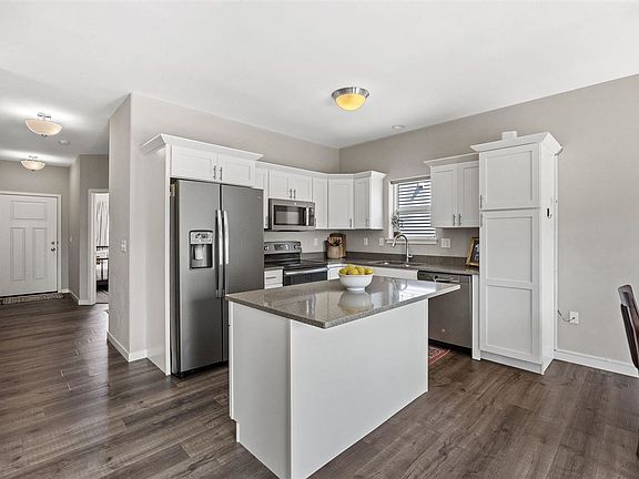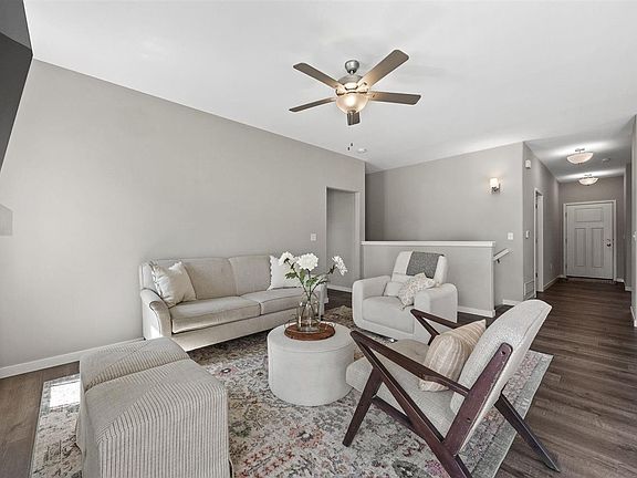 Beautifully designed ranch-style home in the sought-after Lindemann Subdivision. Offering modern comfort and stylish finishes, this home features a spacious open-concept main level with a fireplace as its centerpiece. There are two bedrooms and two full baths on the main with the primary suite boasting a luxurious ensuite with a dual vanity, walk-in shower, and an expansive walk-in closet. Upscale touches throughout, including luxury vinyl flooring, sleek quartz countertops, crisp white cabinetry with matching trim, and GE slate appliances. Built for superior energy efficiency, this home includes a 96% efficient furnace, a 16 SEER air conditioner, and a WiFi-enabled thermostat for ultimate climate control. Convenience meets functionality with a mudroom/laundry room combo right off the garage. The fully finished walkout basement offers two additional large bedrooms, a full bathroom, and an oversized storage room. Step outside to enjoy the back deck off the dining area, a lower-level patio, and a fully fenced yard—perfect for relaxing and entertaining. New microwave installed in 2023.