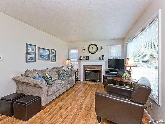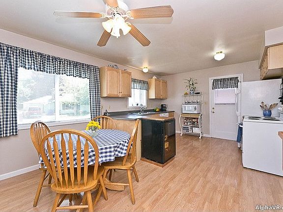 Picture perfect yard w/ apples, filberts, blueberries and more. Adorable Bungalow on oversized and fully fenced lot. Vinyl windows and air conditioning. Two ponds greet you as you enter the back yard, take the path to find the basketball court. Three out-buildings perfect for yard and garden storage. You have to see this in person!