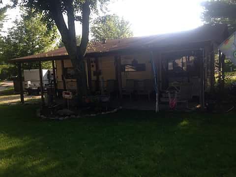 The trailer sits on a corner lot. There is an overhang protecting the roof of the trailer along with the porch. There is lake access directly across the street. It is one of few lots with a decent yard. The driveway allows at least 6 cars to park in. There are two barns. One with a washer and dryer hook up and another one for storage and boat items. The trailer consist of a kitchen with fridge, microwave, propane gas stove. The living room area has the couch and television. A kitchen table will be left. A full functioning bathroom. Two bedrooms, one with King size bed, one with bunk beds. The trailer has two air condition units which keeps it cool. The lake itself is over 500 acres for boating, skiing, fishing and more. There is a beach with basketball goals and a clubhouse. Golf carts are a huge hit as well.