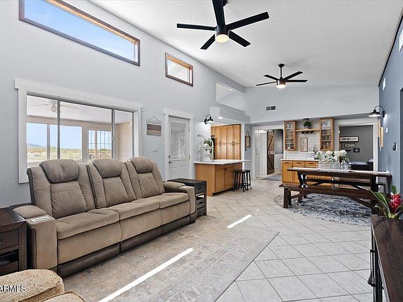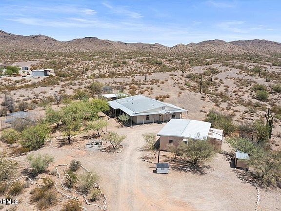 8.5 Acres of stunning, unobstructed views! Over 1,000 square feet of the property backs against BLM land. If you're looking to escape the city, work from home, or enjoy retirement and the outdoors, this home is perfect for you. Located in Salome, AZ, just an hour and a half from the city, this 1,848 sq. ft. home boasts 3+ bedrooms, a full-sized den, and 2 bathrooms, all set on approximately 8.5 acres of beautiful desert paradise. The property includes a 960 sq. ft. workshop/garage with a 3/4 bathroom.The home features vaulted ceilings, roll-up shutters, and ceiling fans throughout, including on the patios. Enjoy mature desert trees, fruit, and citrus trees on an automatic watering system, and an enclosed garden area. The workshop/garage has 960 sq. ft read to be converted, Brand new roof.