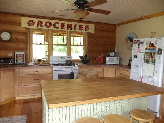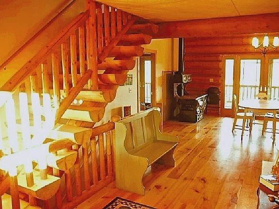 This is an awesome 2BR/3BA log home on 21 acres! The home was built in 2004 and features high performance windows and modern 12" full log construction through Neville Log Homes North. The home features maple cabinets, wide pine plank flooring, two fireplaces, concrete kitchen counters, and warm country home finishes (infloor heat on main and basement levels) that make this feel like home. Its 2,500 plus finished square feet on the main and loft, with another 1500 square feet of dry basement with a 3/4 bathroom awaiting your plans for building it out. Build your own equity by finishing the basement--add a couple bedrooms, a sauna, and family room to finish off the home! The walk-out lower level is unfinished but has an awesome stone fireplace with insert that the seller has used to heat the home. The floor is built with quiet floor i-joists. Other nice finishes Outside, a two-car or larger garage would make this an even better, more family friendly home. The finishes are higher end, and the home is warm and welcoming. The property gently slopes to the east toward the woods and the river. The owner has mowed five plus acres of the yard, and your kids would love the yard and woods. It is a family friendly setting.