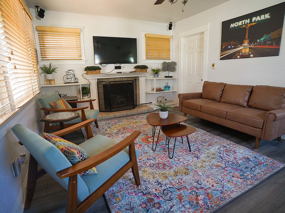 Located in the up and coming neighborhood right between North Park and City Heights, very close to University Ave. Fireplace in living room, washer and dryer in a separate shed attached to the house, laminate flooring throughout, plenty of windows for natural light, ceiling fans through every space of the home. There's also a 220V outlet for EV Charging from the shed, remote Key FOB or mobile app to open and close Security Gate for parking at the back of the property. All kitchen appliances included. It also currently has all furniture available, so we prefer to rent it out already furnished but could move all of them out if you wish. Below are the details: - 2 Bedrooms - 2 Bathrooms - Fireplace in Living Room - French Door Fridge, Electric Range/Oven, Dishwasher - Washer and Dryer - EV Outlet (220 Volts) - Front Patio - Front Yard - Good sized Backyard - Automatic Security Gate - Parking at the back of the property, accessed through the alley Owner pays for trash, sewer, and gardening/landscaping. One year lease minimum and month to month thereafter. Only people included on the application are allowed to reside in the property. No subleasing. No pets and smoking inside the property.