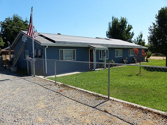 This beautiful 3 bedroom 2 bath is situated on 3.3 acres and located only two miles from town. The home boasts a two car detached garage, an extra outbuilding, above ground pool, fully fenced yard for pets, transferable leased solar ( that saves approximately $150 per month on electric bill), solid set timed sprinklers and 5 hard wired security cameras. The well and pump were put in back in 2008 so there should be no worries with the current drought situation. The interior of the home has a comfortable open floor plan in the kitchen, dining and living room area. There is much to appreciate including the nice shade trees all around and fruit trees ripe for the picking. Realtor representing buyer will receive 3% commission.