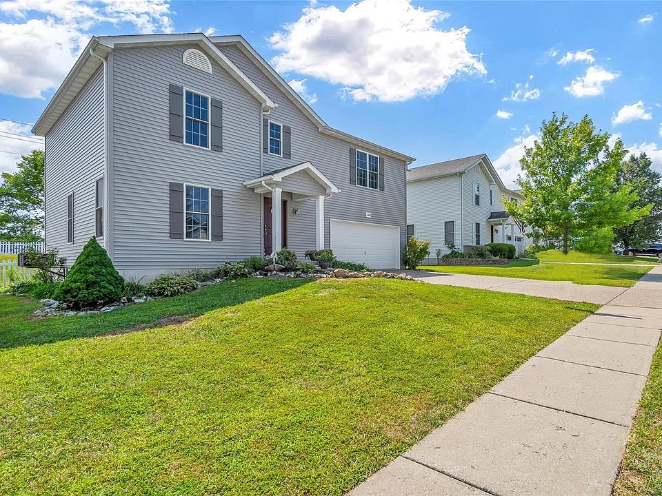 A beautiful home awaits your family. This home is located in the sought after Stone Meadows neighborhood, in the highly-rated Wentzville school district. Upstairs you'll find 4 large bedrooms, 3 with walk-in closets, 2 full baths and a convenient laundry room. The main level provides a half bath, an open dining and living area, and a kitchen with 42-inch cabinets, a breakfast bar and spacious countertops. A fenced backyard can accommodate your pets or host a game of catch while the 2-car garage can house your vehicles. The home offers new siding,  impeccable new flooring throughout and has been freshly painted. Amenities in the subdivision include a ball field, soccer field, clubhouse, 2 swimming pools, or you can stroll the wooded walking paths. Start making memories in your new home.