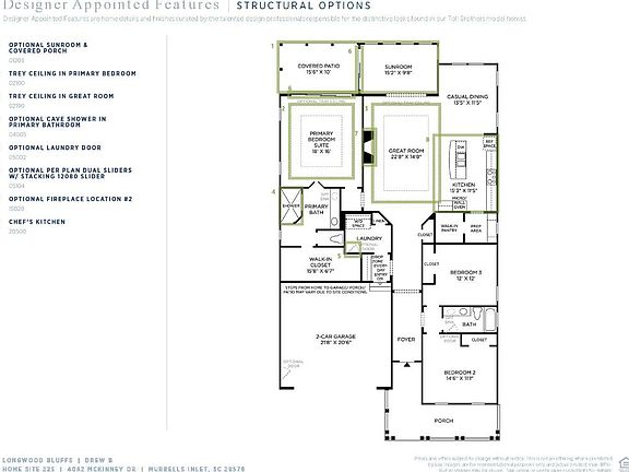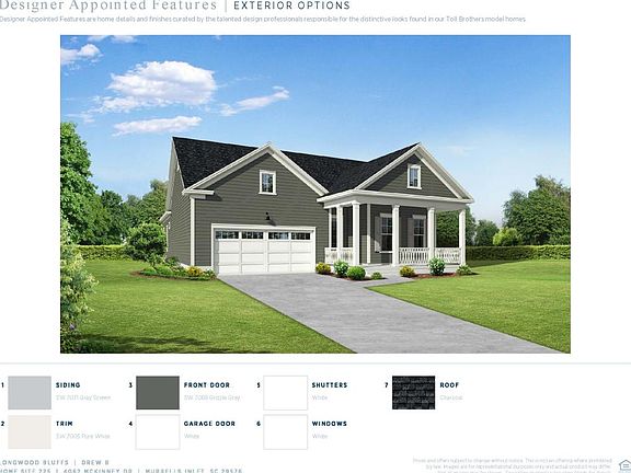 Under construction! A touch of style and design, the Drew B floorplan boasts a well-designed kitchen which opens into a bright casual dining and living area. The kitchen is equipped with a large center island, plenty of counter and cabinet space, stainless steel appliances, quartz countertops, and a farmhouse sink. The great room features a fireplace and dramatic tray ceiling. The primary bedroom suite is highlighted by tray ceilings, a 12' stacking slider and spa-like bathroom with cave shower. Additional highlights include a sun soaked sunroom with sliding glass door, rear covered porch for outdoor living and entertaining, a convenient drop zone, and centrally located laundry. *Photos are of a similar Drew plan. Pictures, colors, finishes, and features are for illustration purposes only and will vary from the homes as built.
