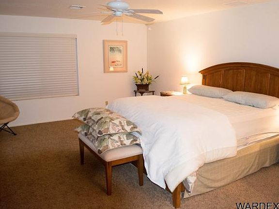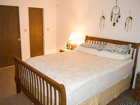 Spectacular move in ready home with boat deep garage on a Half-acre lot! Just minutes to Lake Mohave, the Colorado River and Casinos. Open and spacious floor plan with split bedrooms. Newer tile throughout & new carpet in bedrooms. Large and roomy bedrooms w/ ceiling fans. Enclosed Arizona room makes a perfect area to gather with family and friends. Plenty of room on lot to add a huge garage.
