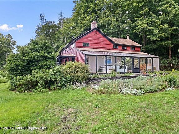 Welcome to Woodstock, the most celebrated little town in the world, where history and charm converge in this quintessential ''eye-brow'' colonial home. The original house is reputed to possibly have been constructed in 18th century though its style appears to be 19th century. This residence embodies the essence of Woodstock's allure with its antique staircase, original fireplace details, wide board hardwood floors, and timeless wood clapboard siding. Upon arrival, you are greeted by a covered front porch, a perfect spot to relax and enjoy the country surroundings of the beautifully landscaped and wooded hillside. Stepping inside, the home exudes period charm, inviting you to explore its storied pastf and update it to your vision. The kitchen, last renovated decades ago, offers a delightful space for culinary creativity and entertaining, centered around an elevated fireplace. This room presents a fantastic opportunity for you to envision and craft your dream country kitchen, taking advantage of the raw space and its immense potential. Adjacent to both the kitchen and the living room, you'll find a sprawling greenhouse room. This sun-drenched space not only provides extensive solar gain for winter heating but also creates a seamless connection to the picturesque outdoors. It's an ideal setting for relaxation and enjoying the beauty of the home's natural surroundings. There's even room for a jumbo dining table if you wish. Just a few steps from the greenhouse, nestled on a hillside plateau, lies an in-ground concrete pool. Surrounded by lush plantings, it awaits a touch of TLC to restore its former glory and become a sparkling oasis once more. Recent upgrades to this antique gem include Scandinavian-designed fin radiators, a large hard-wired generator, and a Venetian plaster surround on the living room fireplace. While the bathrooms may not be newly renovated, they brim with character and charm, adding to the home's unique appeal. There's even one with a stand alone bidet. This Woodstock residence is a rare find, offering a perfect blend of historical character and modern potential. Come and experience the timeless beauty and warmth of this exceptional property. Notes: Wiring is in place to install your own electric car charger near the carport.