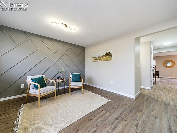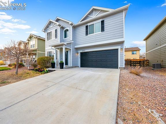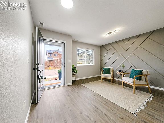 Welcome to your dream home, where modern elegance meets functionality! This stunning two-story, four-bedroom, two-and-a-half-bathroom single-family residence with a two car garage is a masterpiece of design and comfort. As you step through the front door, luxury vinyl plank flooring guides you through the main level. The versatile front room boasts a custom wood feature wall, setting the stage for endless possibilities. The kitchen is a culinary delight with brand new shaker cabinets, soft-close drawers, stainless steel appliances, and a beautiful glass tile backsplash. The dining area, illuminated by a flood of natural light through a large sliding glass door, seamlessly connects to the low-maintenance, fully fenced backyard and expanded patio area.The family room is adorned with an electric fireplace set against a stylish TV wall, creating a cozy and inviting atmosphere.Ascend the staircase, where plush new carpeting leads you to the second floor. The landing features more luxury vinyl plank flooring and serves as a gateway to all four bedrooms and a full-size laundry room equipped with front-loading washer and dryer, along with ample cabinets for your laundry essentials. The Master Suite is a sanctuary of sophistication, boasting a custom wood accent wall, an elegant fandelier fixture with adjustable light and fan settings, and a luxurious en-suite bathroom. The bathroom features a separate tub and shower with waterfall fixtures, a water closet, an extra linen closet, and a walk-in closet equipped with custom built-ins for optimal organization of clothing, shoes, and accessories.The second floor is completed by a full bathroom to accommodate the entire family.Conveniently located just a short distance from schools, parks, shopping centers, the highway and a mere 10 minutes from Fort Carson, this home is not just a residence; it's a lifestyle. Don't miss the opportunity to make this exquisite property your own!