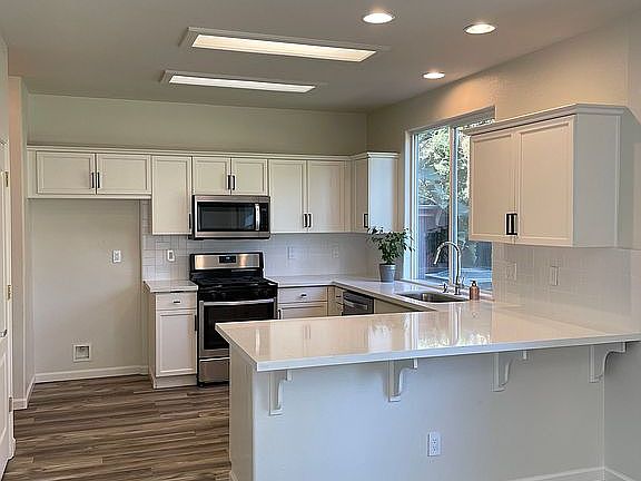 Fully renovated 3 bedroom 2.5 bath, 2-story home in a quiet gated community called European Grove in NW Fresno. BRAND NEW waterproof luxury vinyl plank flooring in the entire home. Brand New Appliances (Stove/Oven, Microwave, Dishwasher), brand new fixtures, and fresh paint on the entire home. Finished garage with Epoxy flooring. One of the few homes in the community with the larger backyard. 5 minute drive to shopping (Walmart, Costco, Target, Kohl's, Home Depot, etc), restaurants, and a movie theatre. Easy access to Highway 99.