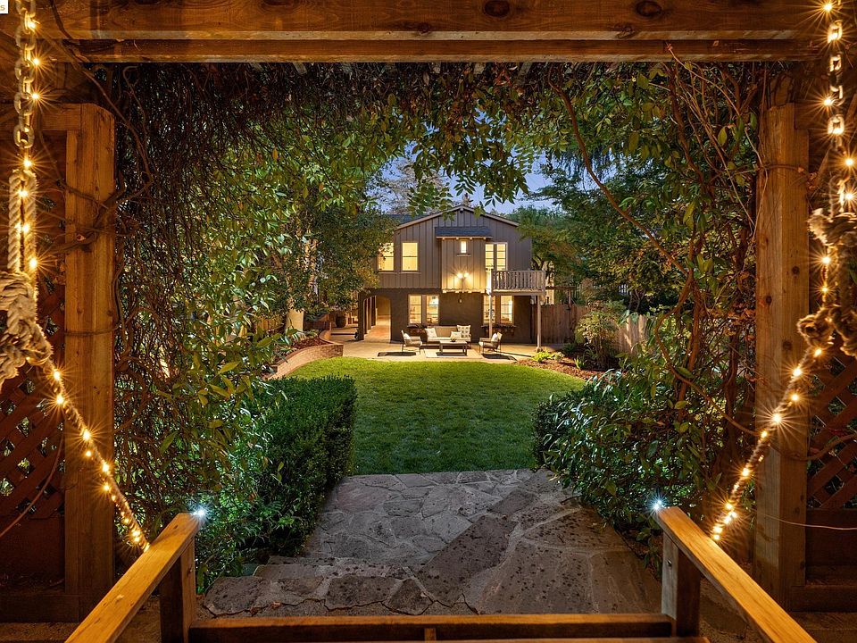 Nestled in coveted & charming Oakmore neighborhood, this refreshed Spanish craftsman effortlessly combines laidback cool & vintage architectural features for timeless edge. Captivating curb appeal w/ flowering magnolia tree, original paver path, fresh plantings, new lawn & fresh exterior paint. Excellent layout for comfortable living & entertaining. Original hardwood floors flow throughout. Living room w/ original vaulted ceiling w/ wrought iron truss detail, gas fireplace, & large picture window floods natural light. Flowing step-down dining room featuring wrought iron railing & West Elm chandelier. Refreshed kitchen w/ chef’s range, fresh cabinet paint, new countertops & fridge, SS dishwasher, & recessed lighting. Cozy breakfast nook w/ built-in cabinet overlooks yard. Upstairs offers 2 bedrooms & remodeled bath. Primary, bedroom w/ dual closets & French doors to Rapunzel balcony. Lower level w/ large bonus room, wood flooring, paneled walls, & backyard access. Bonus bedroom/flex room off this space w/ yard access 2nd full bathroom & walk-in shower -- perfect for short or long term visitors. RARE, large flat backyard w/ fresh lawn, patio, & charming chair swing. Sweet spot on Oakland/Piedmont border. Walk to Rockys mkt, 3 Seasons Thai, etc. Close to Montclair, Glenview & Parks.