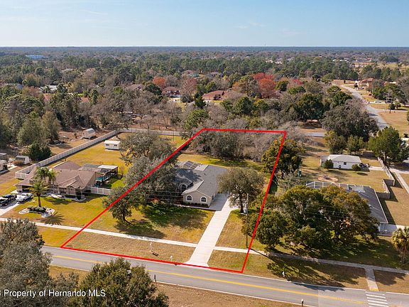 A REMARKABLE FIND in the coveted community of SPRINGWOOD ESTATES on nearly 1 ACRE. LOCATION, LOCATION, LOCATION! Beautifully and Impeccably Maintained POOL and Spa w/ Cabana home has it ALL! Nearly 2700 sq feet with 4 BEDROOMS, 3 BATHS, 3 CAR GARAGE with BRIGHT & NATURAL light,SOARING Ceilings, NEUTRAL color scheme and OPEN plan! NO HOA/CDD Fees! EXPANSIVE driveway and Mature landscape immediately makes you feel that you have arrived home to your own piece of PRIVACY! 3 car garage welcomes space for a golf cart, work bench/tools, and plenty of room for RV parking, boat or other hobbies in the driveway! Completely fenced yard to Spread your wings. Let the kids and fur babies run & play! Ever wanted a She Shed? There is Space! Greet your guests at your double door entry. The outdoor oasis will immediately catch your attention. The abundance of windows and light will draw your eye to nearly see through the entire house from the front door. Living room, dining room, nook, family room and Owner's Retreat ALL offer FLOWING space by Combining OUTDOOR LIVING from Glass Sliding Doors that open to the private POOL/SPA and Cabana; True Florida Living!