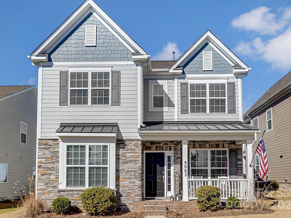 Welcome to this stunning Charleston-style home in Tega Cay’s Cameron Creek neighborhood! This 3-bedroom, 2.5-bath residence blends timeless charm with modern functionality for stylish living. The open-concept floor plan features a kitchen with granite countertops, a gas range, a breakfast bar, and a pantry, flowing seamlessly into the sunlit family and dining areas. A dedicated main-level office and rear-entry 2-car garage add convenience.