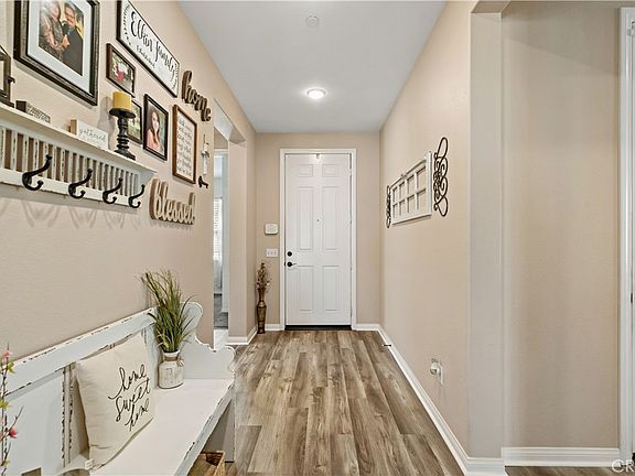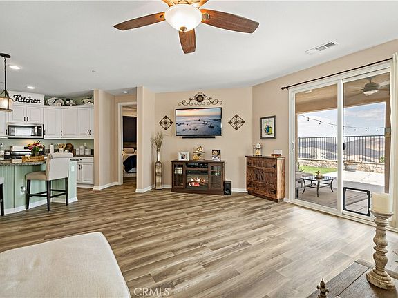 Gorgeous Single-Story home located in the highly sought-after Alberhill Ranch Community! ENJOY BREATHTAKING Mountain & Lake VIEWS from your Backyard!! Once inside, you’ll immediately be welcomed by tall ceilings and many upgrades including luxury vinyl plank flooring which leads into the open Great Room, perfect for entertaining a big family or large gatherings with plenty of natural light throughout this home! The gourmet modern Kitchen is the heart of this home, with an oversized island under upgraded pendant lighting, beautiful white cabinets with upgraded hardware, stainless steel appliances, granite counter tops, and a large pantry for all your storage needs. Just off the kitchen is the large primary bedroom featuring a walk-in closet, a stunning primary bath with a frosted glass walk-in shower, dual-sink vanity with white marble countertops, upgraded lighting, and a large storage closet. This floor plan features 3 total bedrooms with a large flex space or potential 4th bedroom. The guest bath features white marble countertops, a relaxing tub and shower, and a large storage closet. Outside you’ll find a private backyard oasis with an upgraded covered patio and STUNNING mountain and lake views along with some of the best sunrises in town! The backyard provides easy maintenance with artificial turf and a nice new relaxing jacuzzi! This home is walking distance to the resort-style amenities offering a community pool, club house, children's water park, playground, soccer fields and sports park. Alberhill Ranch also has a boys & girls club! Don't miss out on this unique opportunity to live in a luxurious home in a community that truly has it all! Close to schools, shopping, and freeway access. This beautifully designed home checks all the boxes! Welcome Home!